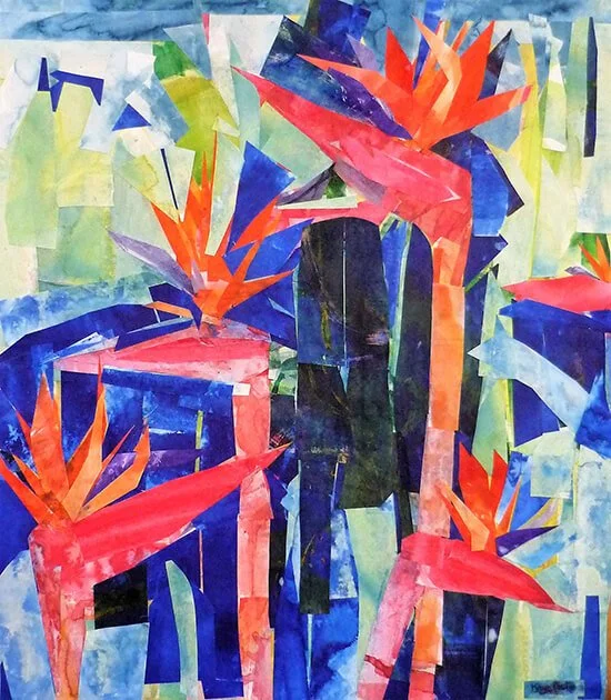 Hand coloured paper collage on 300gsm hot press Arches Watercolour paper